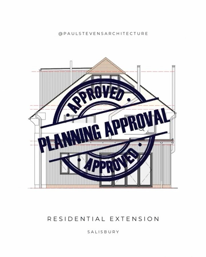We are delighted to have been granted planning permission for this two-storey extension in Salisbury. The new design will provide an open-plan kitchen/dining area and a new walk-in wardrobe on the first floor.